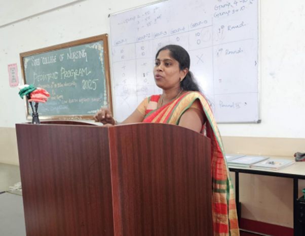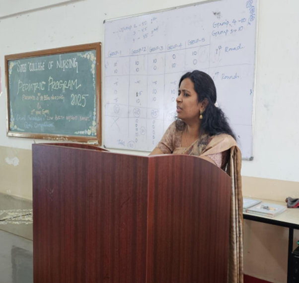 The Pediatric Department organized a two-day educational and interactive program to  enhance the knowledge and skills of nursing students in pediatric care. The event was  coordinated by the HOD of Pediatrics, Mrs. Hemalatha ma’am and supported by faculty  members. Participants included all the batches with special sessions dedicated to  freshers.